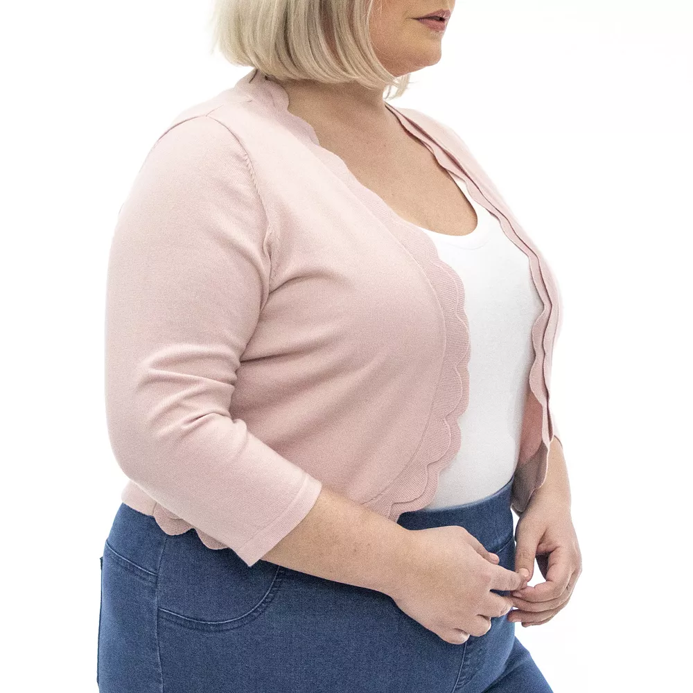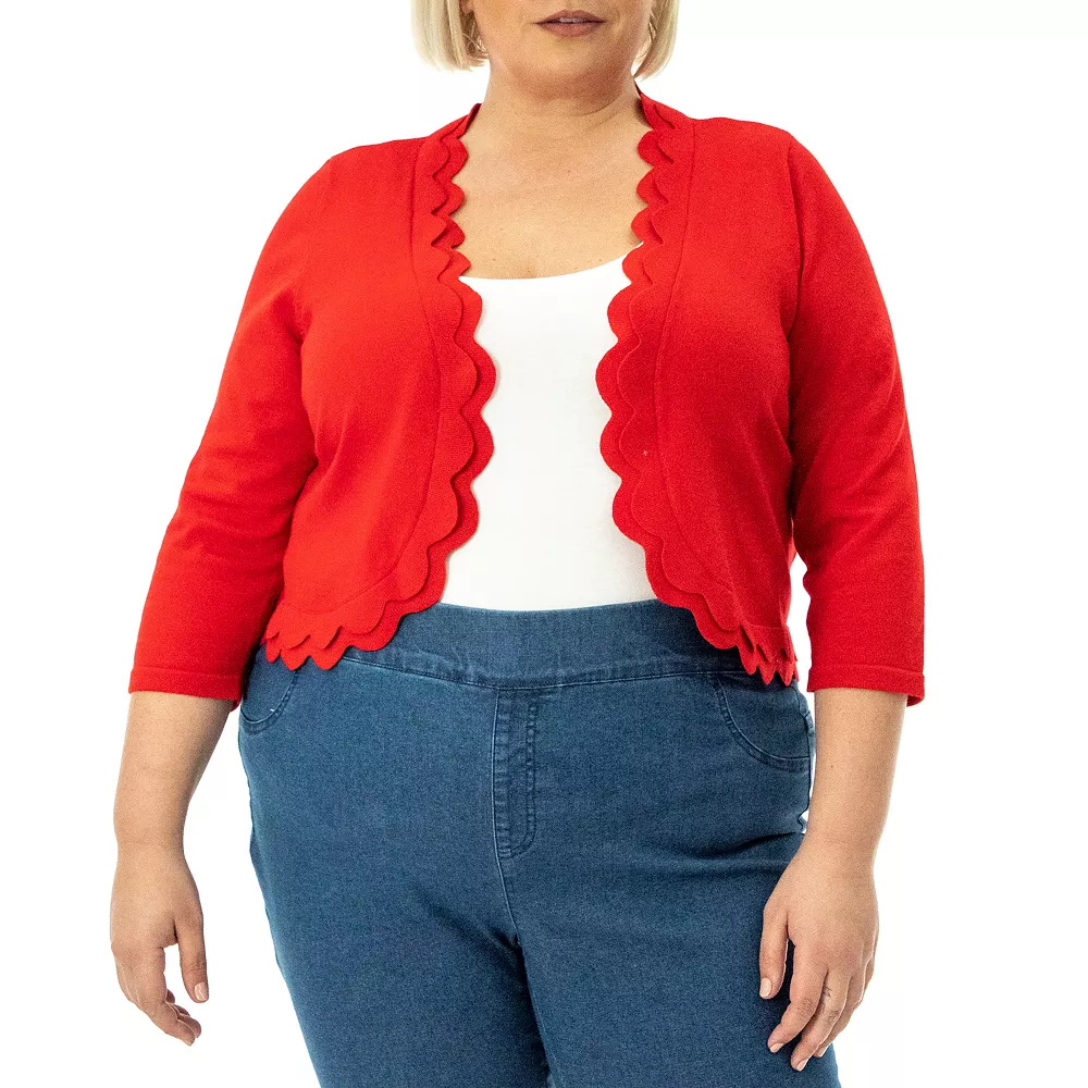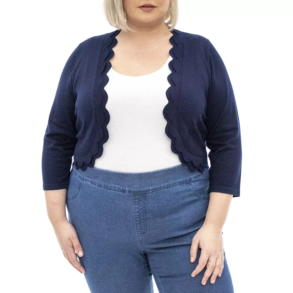 Top off any outfit with this women’s Nina Leonard scallop-trim bolero.