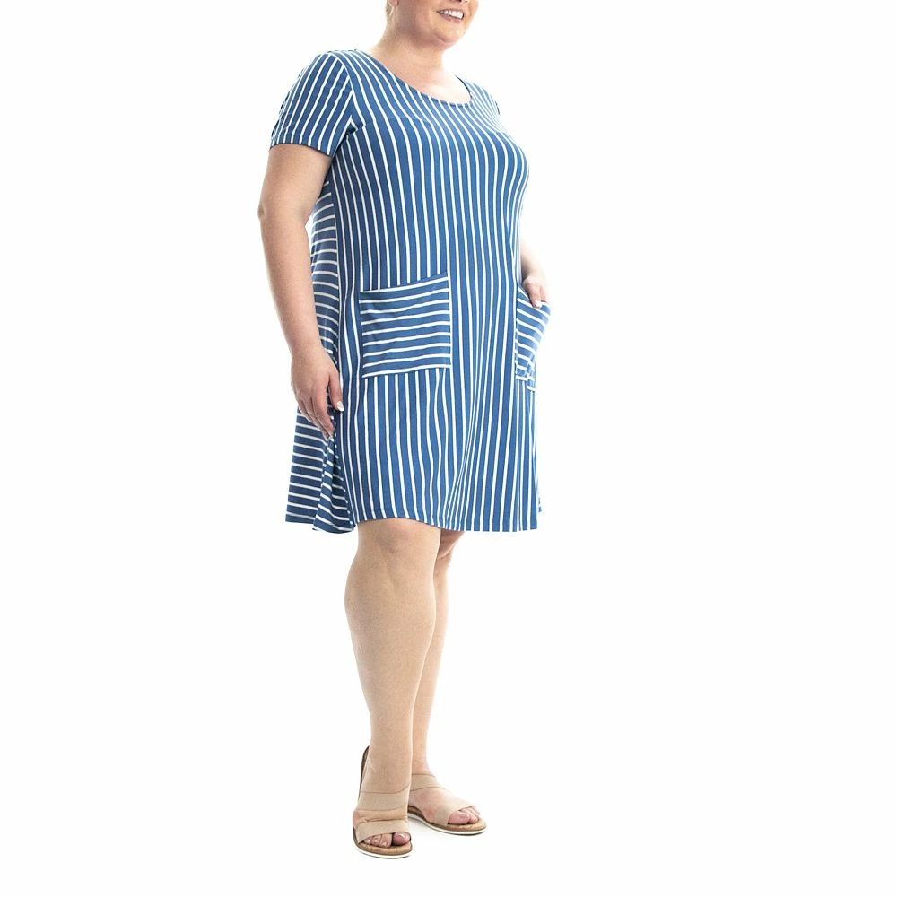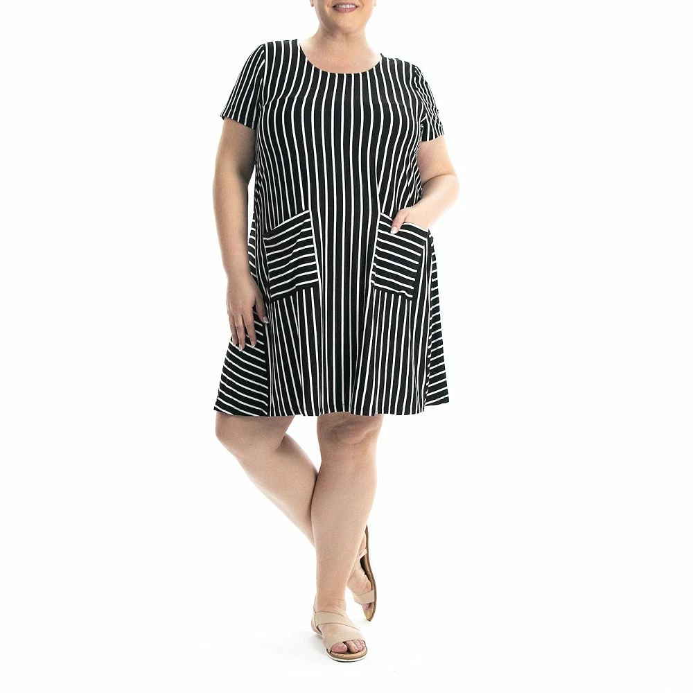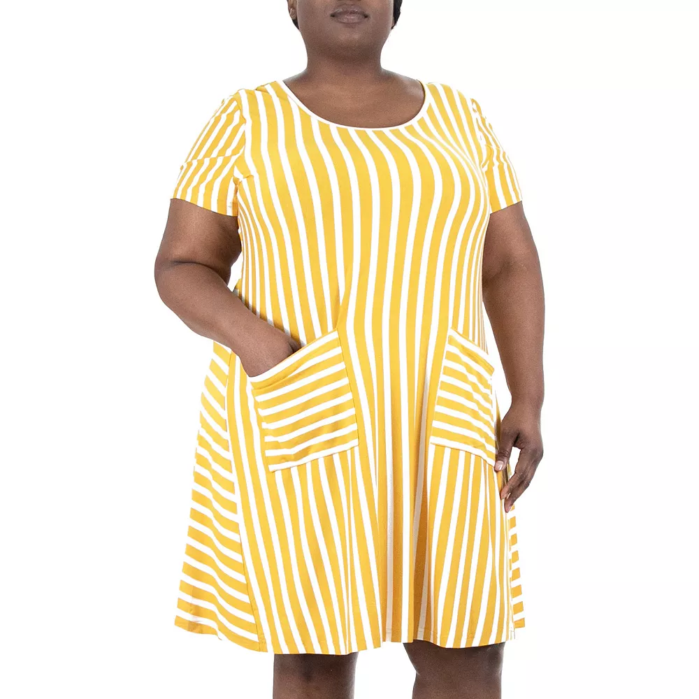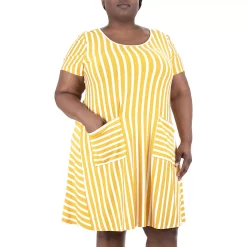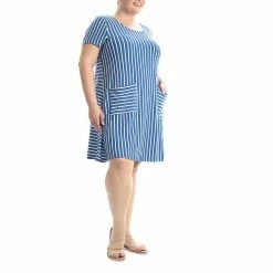 A striped pattern and relaxed fit combine to give this women’s Nina Leonard t-shirt dress a casual look you’ll love.