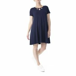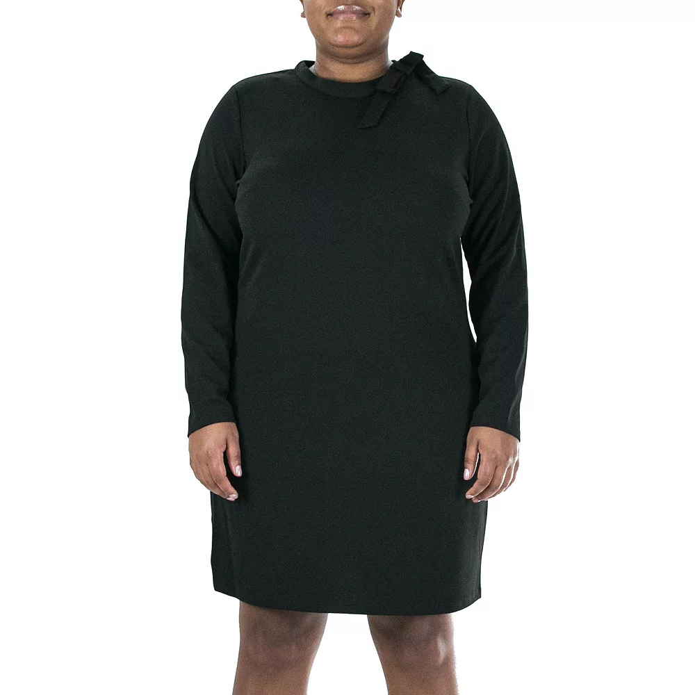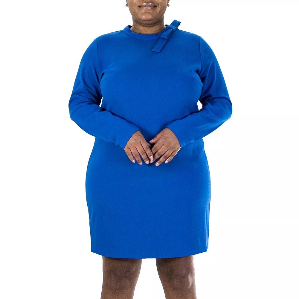 A tie accent and sheath cut make this women’s Nina Leonard dress a stylish essential.