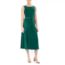 Sweet summer style is effortless in this women’s Nina Leonard midi dress, featuring a sparkling sash and flattering A-line skirt.
