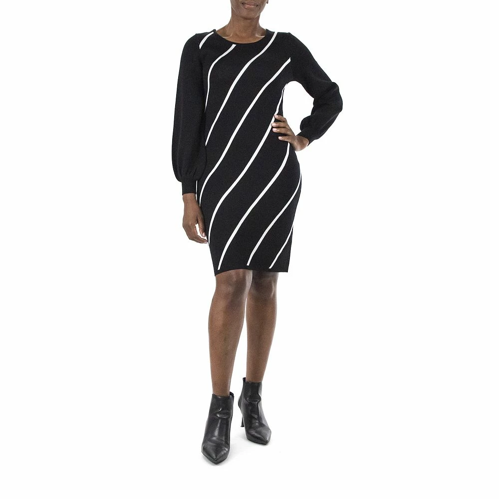 The flattering angled stripes make this women’s Nina Leonard sweater choice a fashionable choice for cold weather.