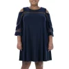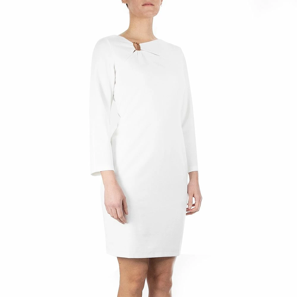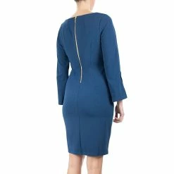 Sleek and chic, you’ll love the way you look in this women’s Nina Leonard sheath dress, featuring an asymmetrical buckle and flowing sleeves.