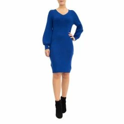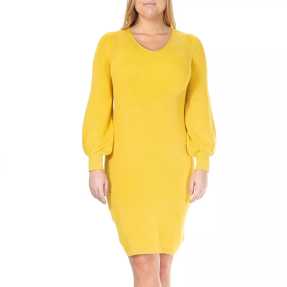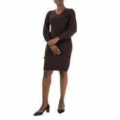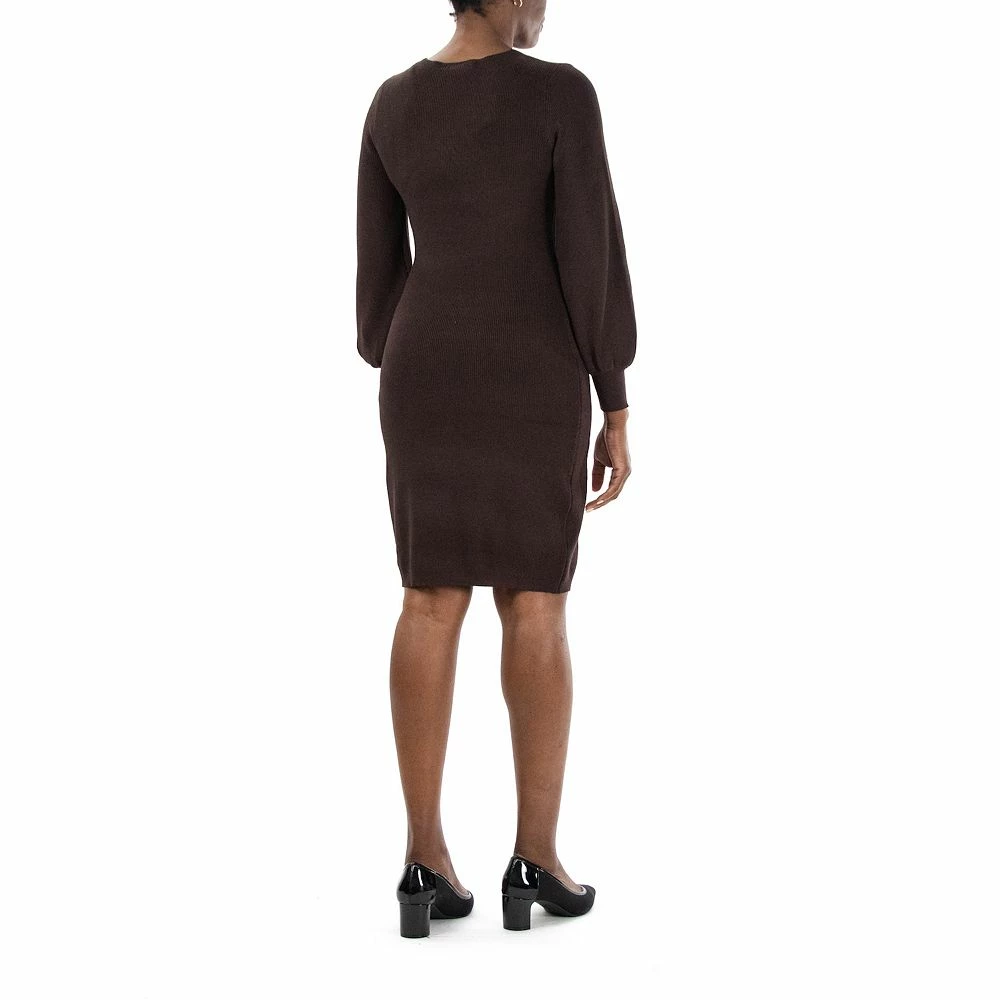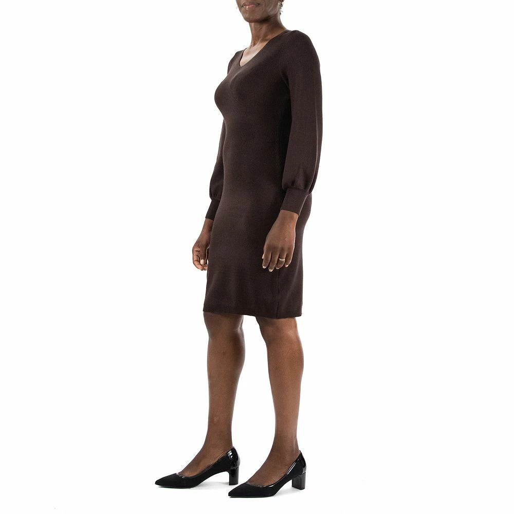 You’ll look great in this stylish and flattering women’s Nina Leonard balloon-sleeve sheath sweater dress.