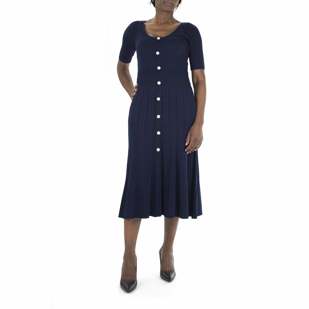 You’ll look cozy and feel cute in this women’s Nina Leonard button-front sweater dress.
