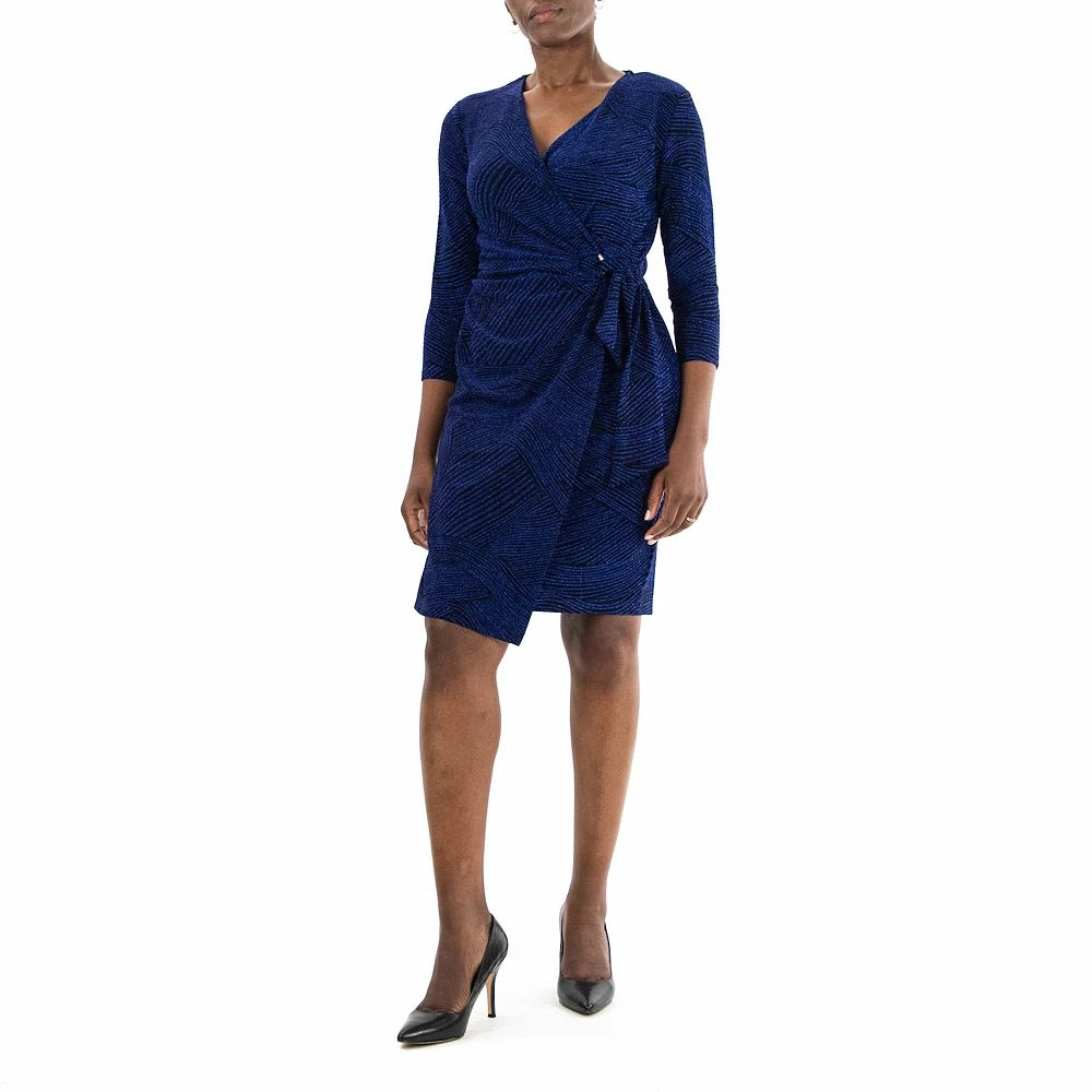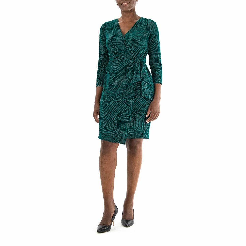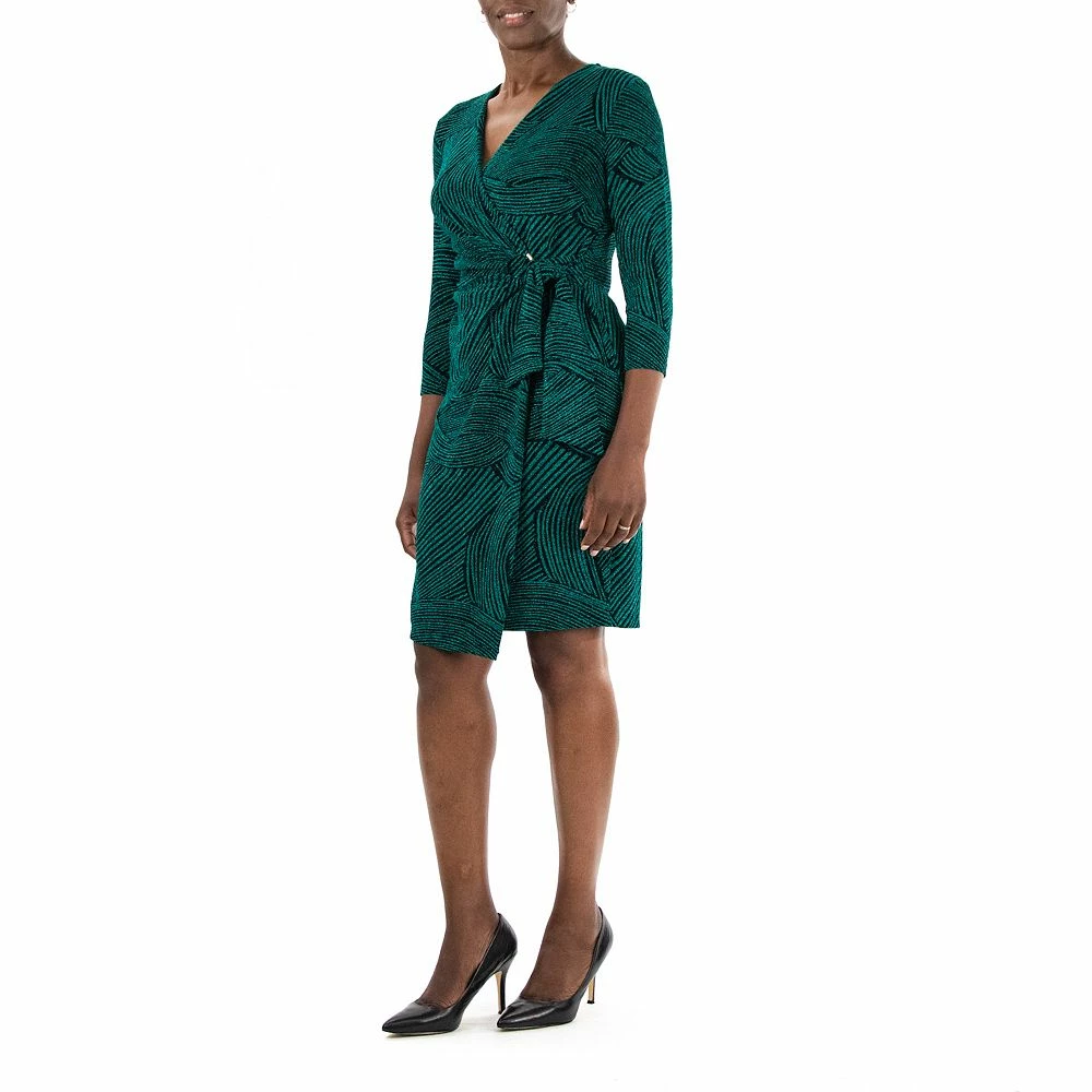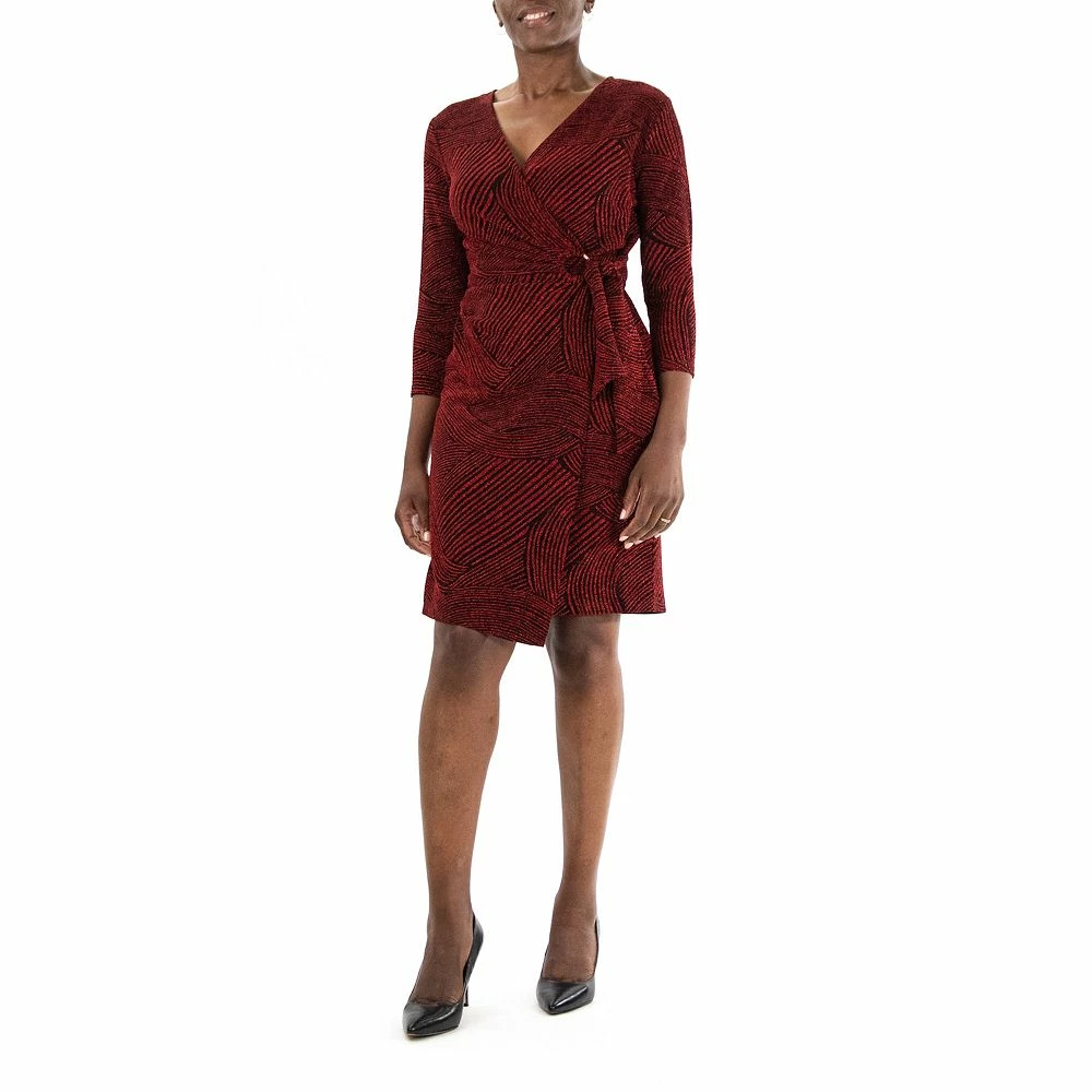 You’ll love the flattering fit of this women’s faux-wrap dress by Nina Leonard.