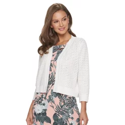 Add a cute layer to your office wear with this women’s Nina Leonard chevron print bolero cardigan.