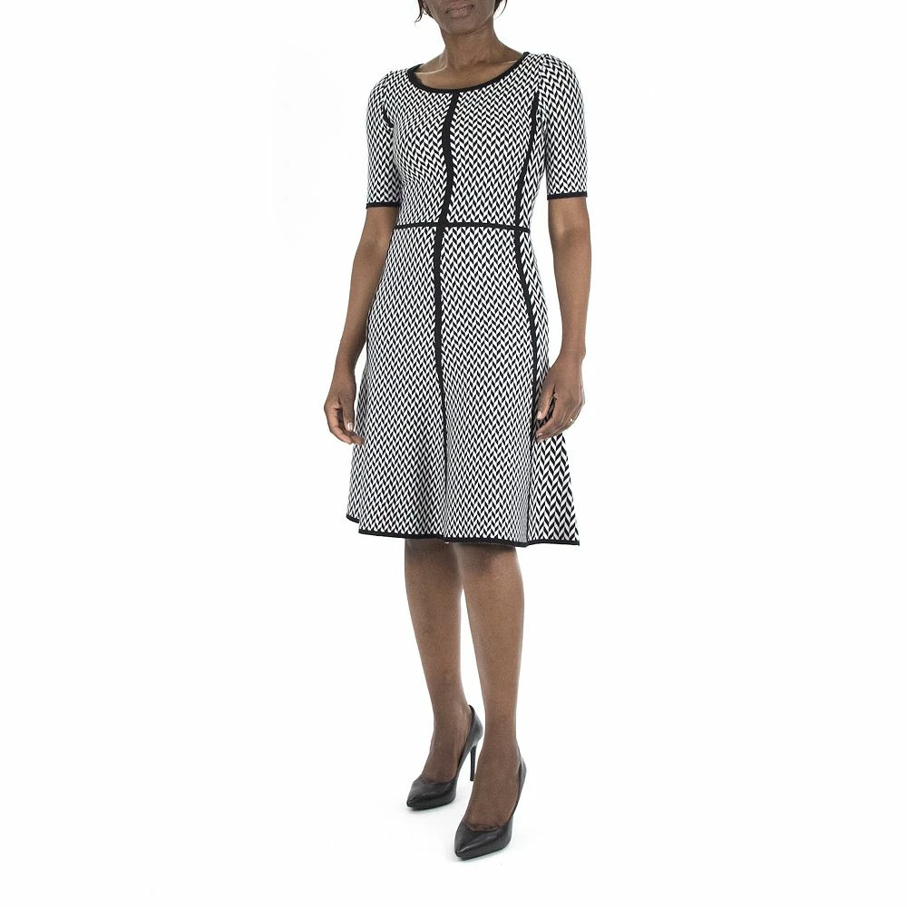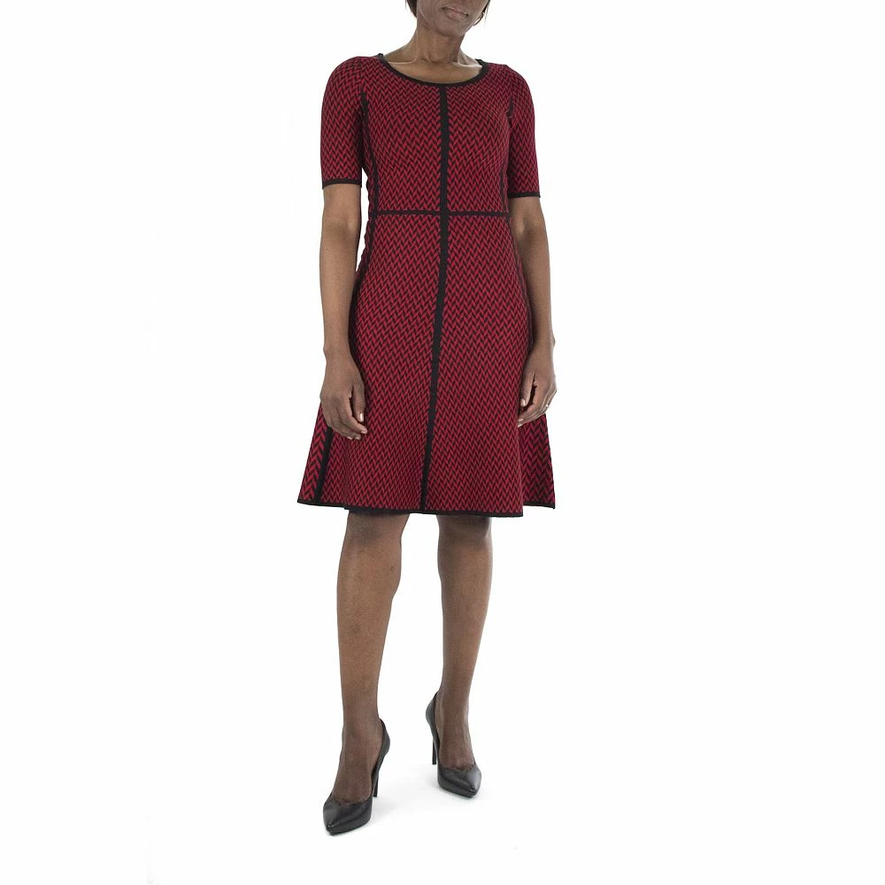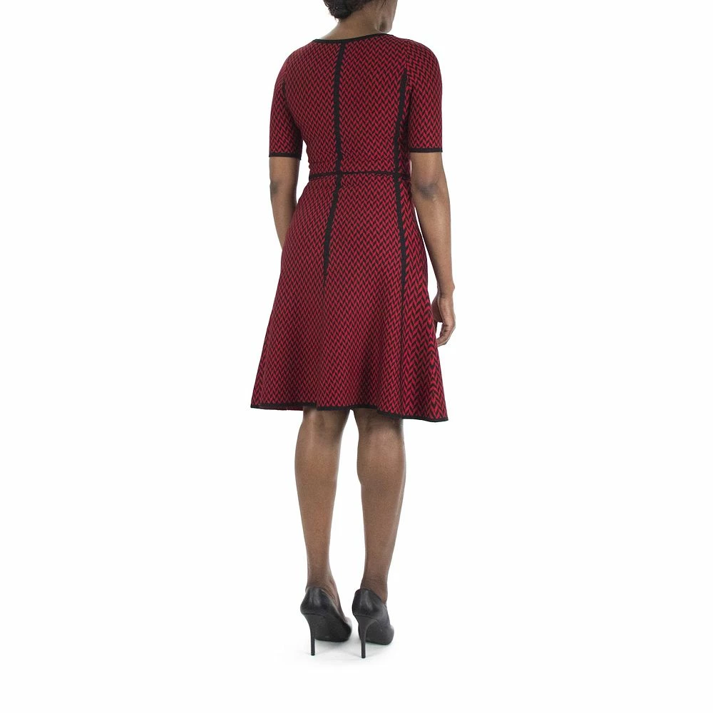 A chevron print and cozy knit construction makes this women’s Nina Leonard sweater dress a cold-weather favorite.