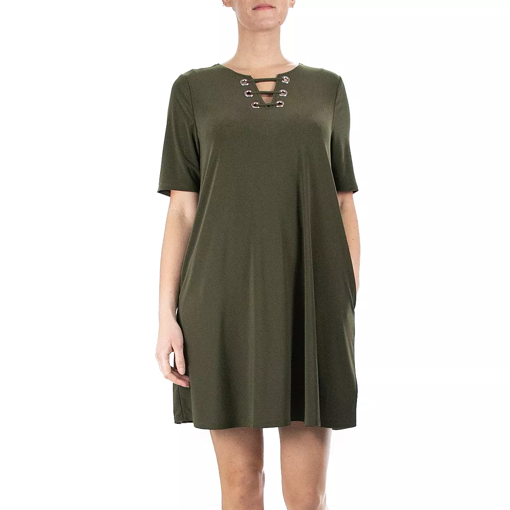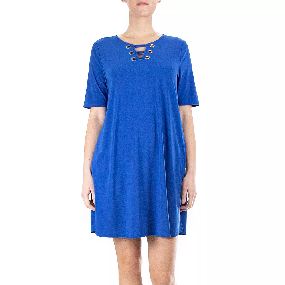 Say hello to impressive style with this women’s Nina Leonard trapeze dress.