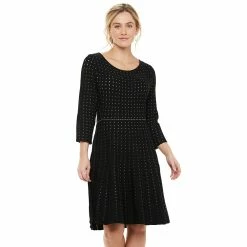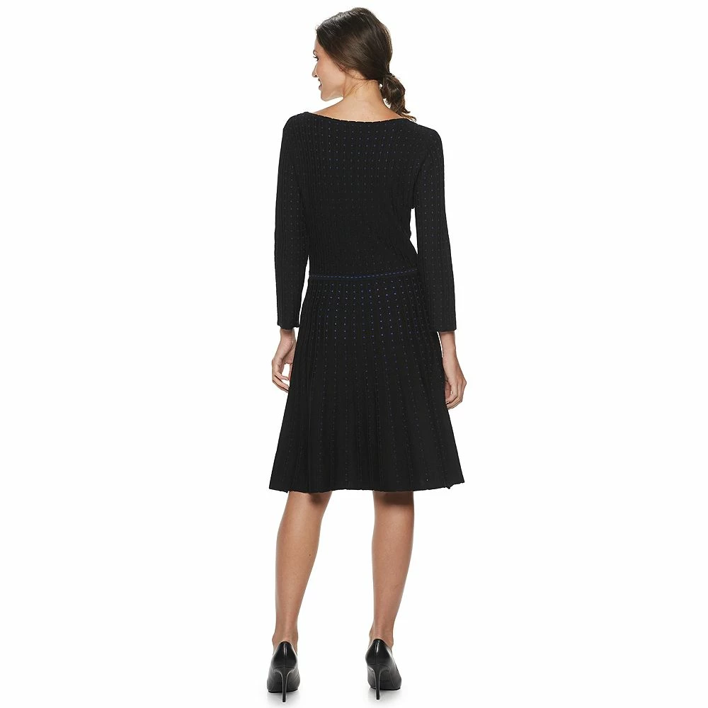 A constrast dot pattern and a fit & flare cut gives this women’s Nina Leonard dress a chic look.