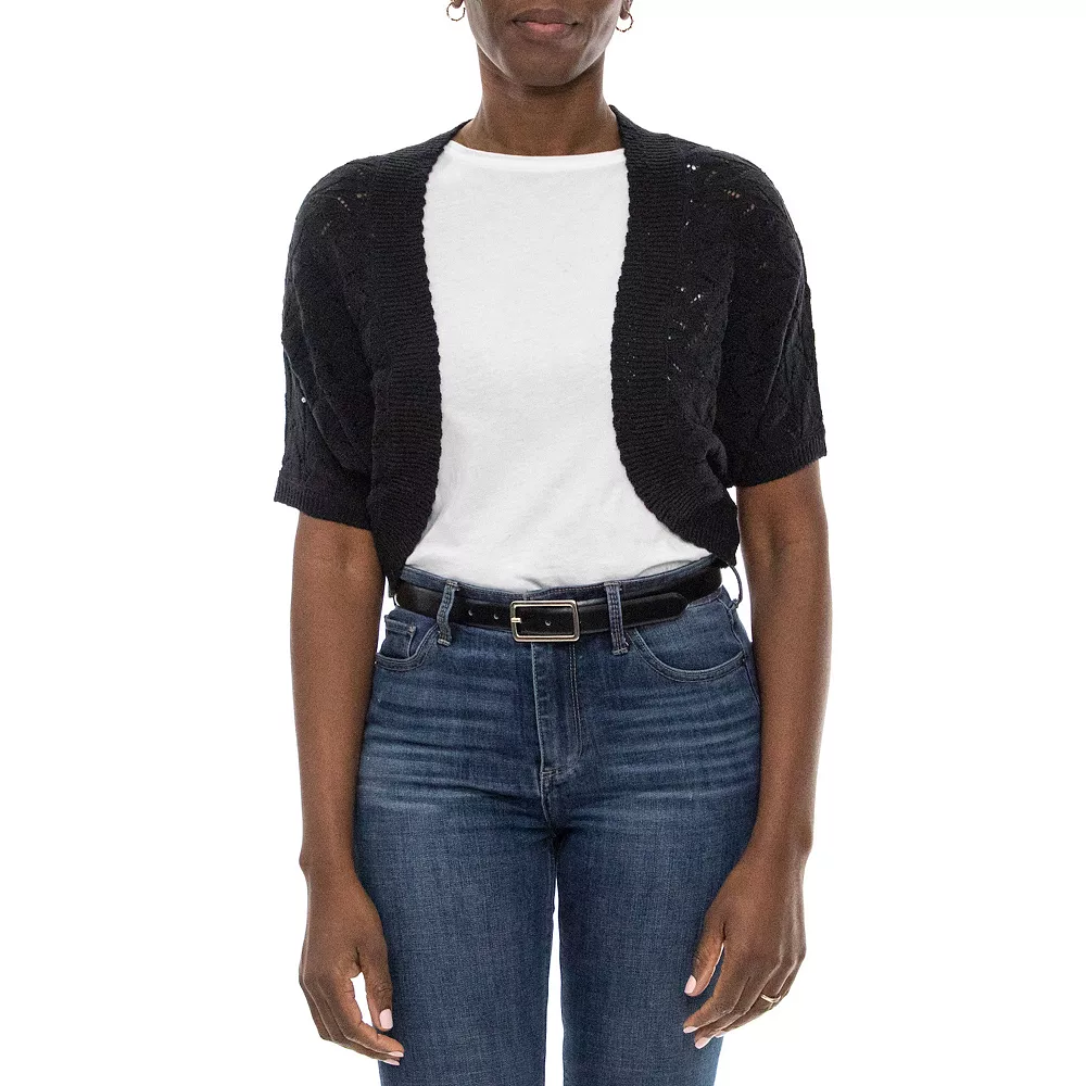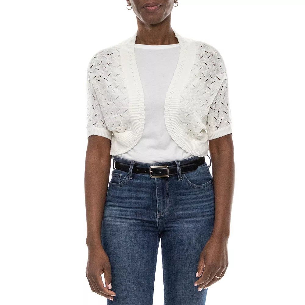 This women’s cropped cardigan by Nina Leonard adds a stylish layer to any outfit.