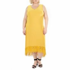 You’ll love the effortless summer style of this women’s Nina Leonard crochet-lace hem midi dress.