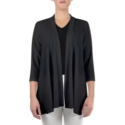 A draped open front and godet back make this women’s Nina Leonard cardigan a stylish layering piece.