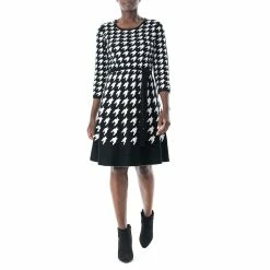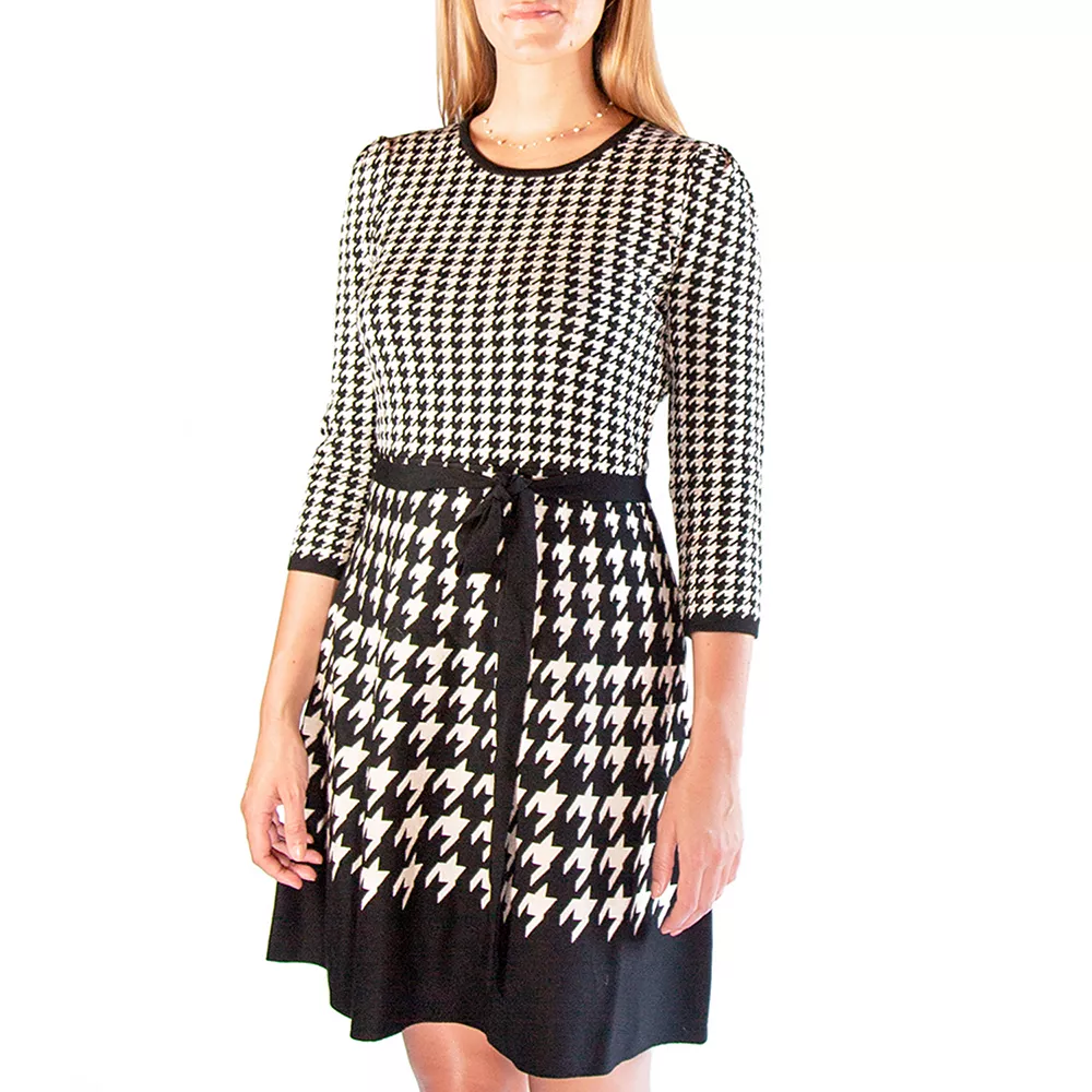 You’ll love the way you look in this women’s Nina Leonard houndstooth fit & flare sweater dress.