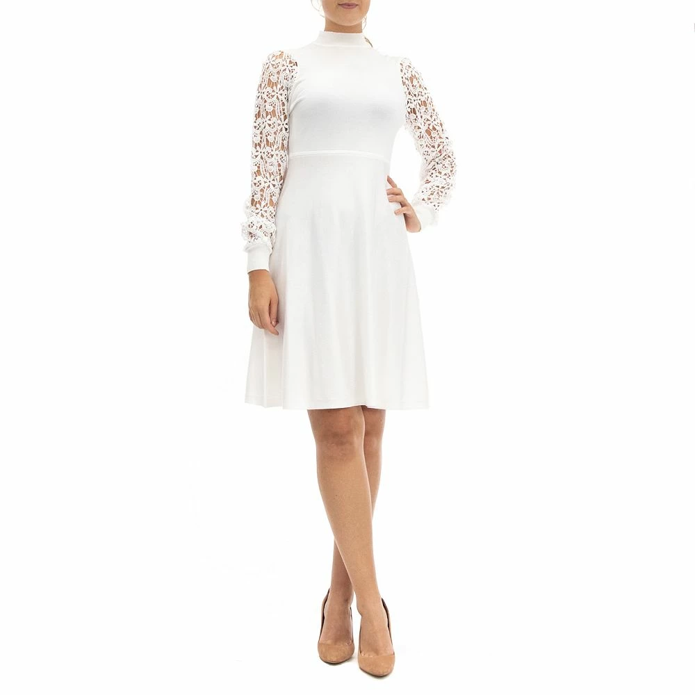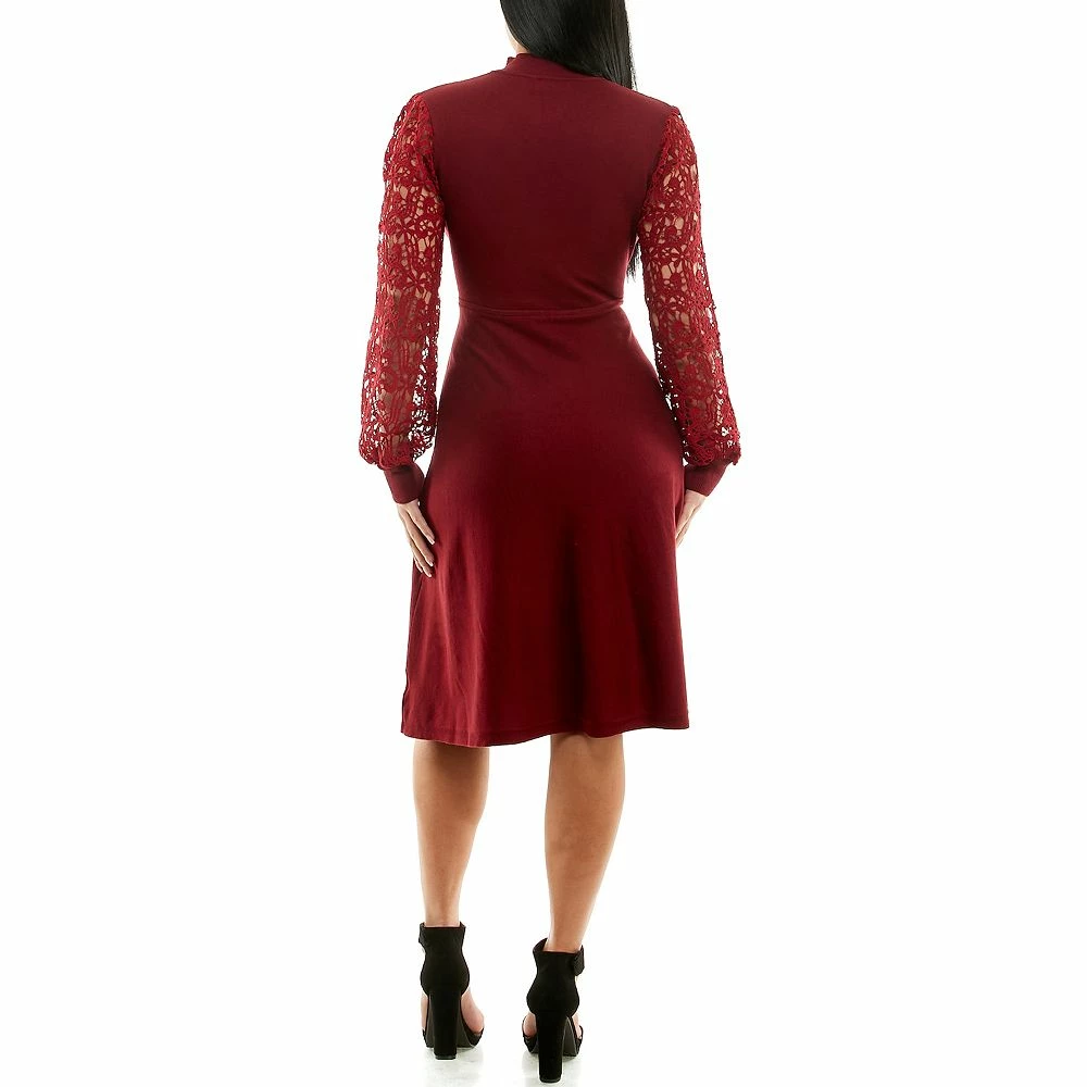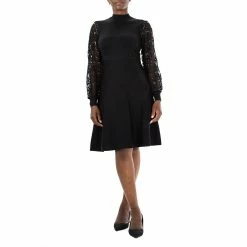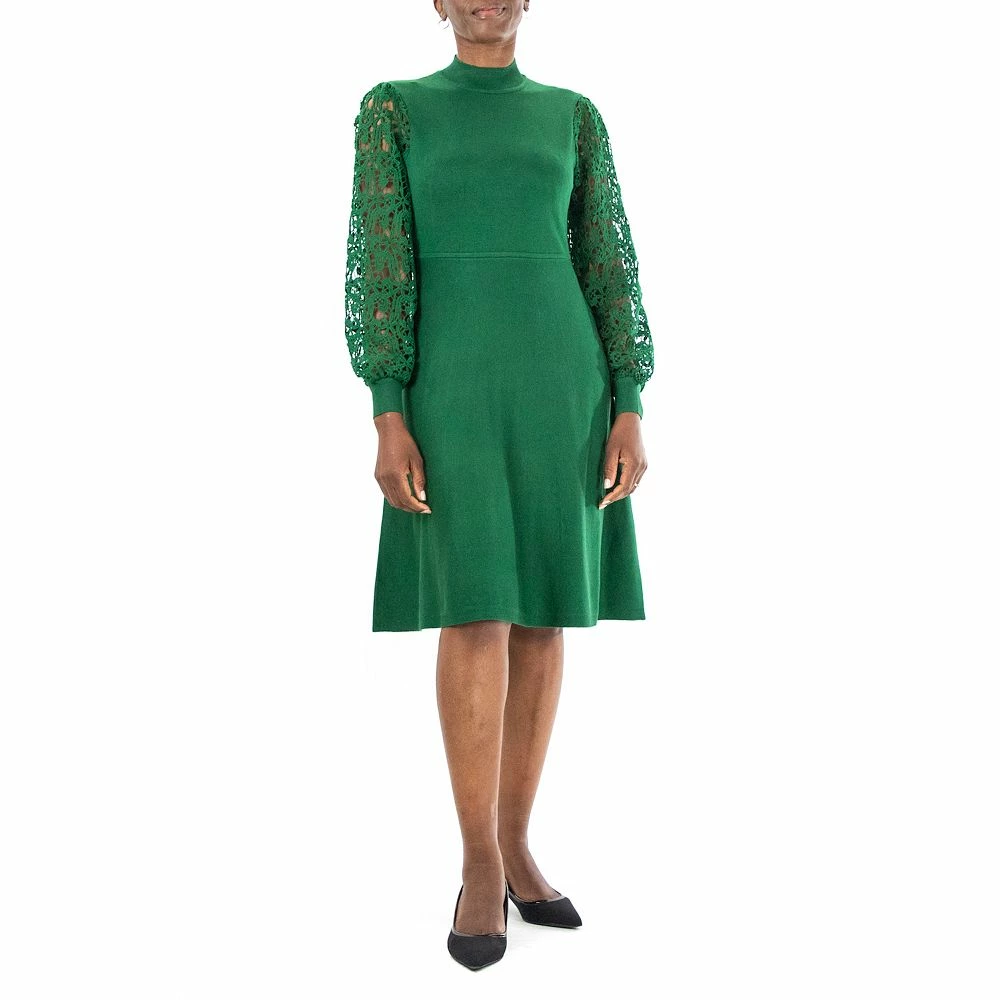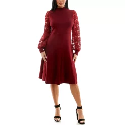 Stay stylish and cozy in this women’s A-line sweaterdress from Nina Leonard. Featuring lacey long sleeves and a pleated skirt, this dress really pops!