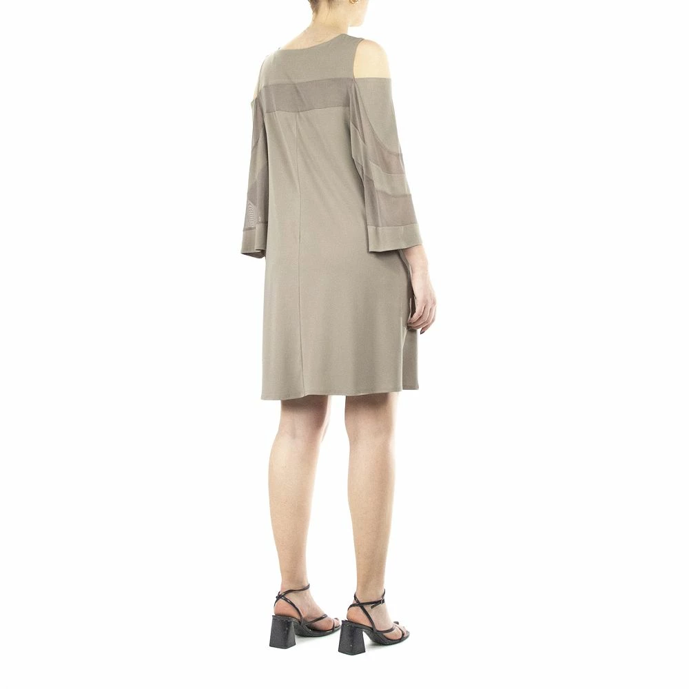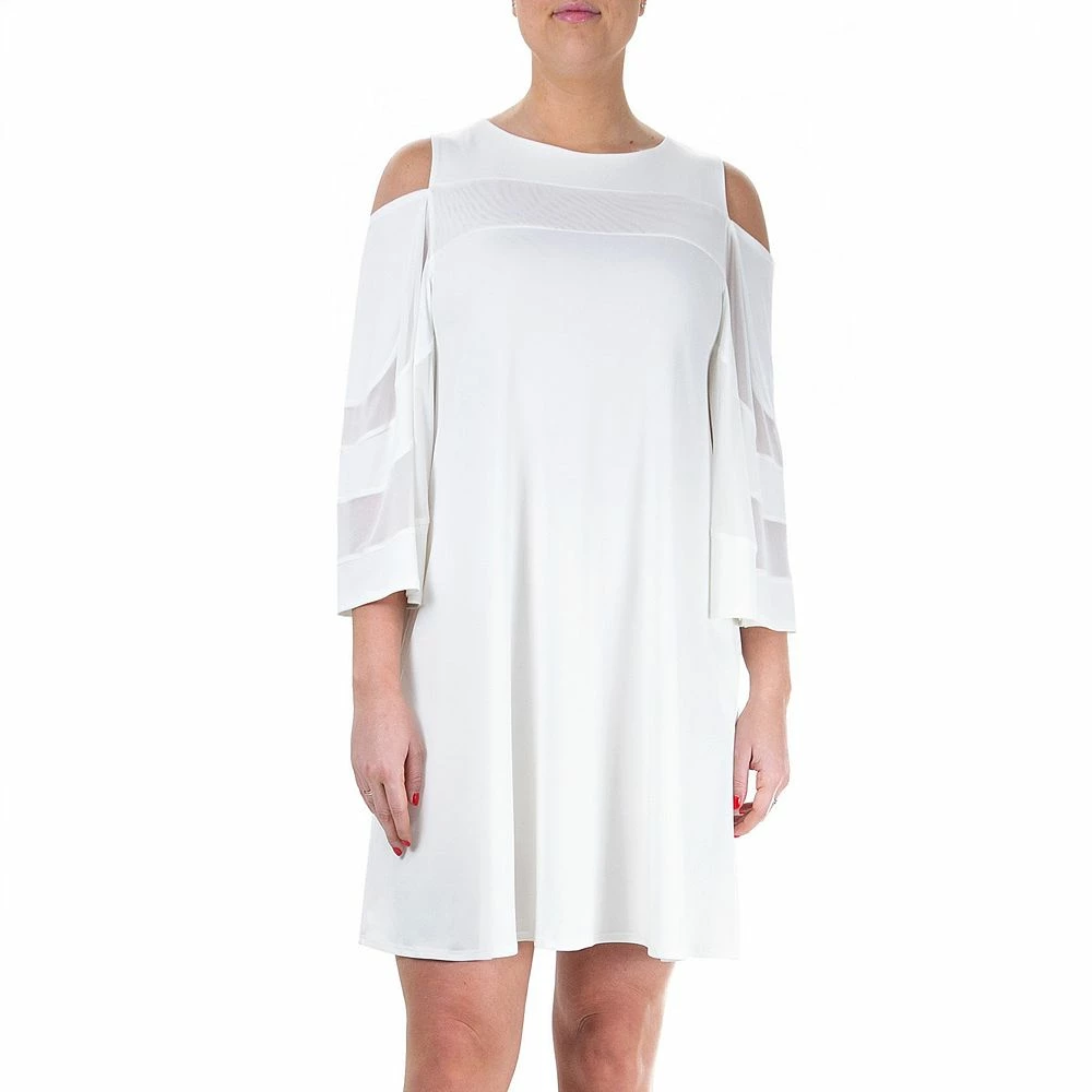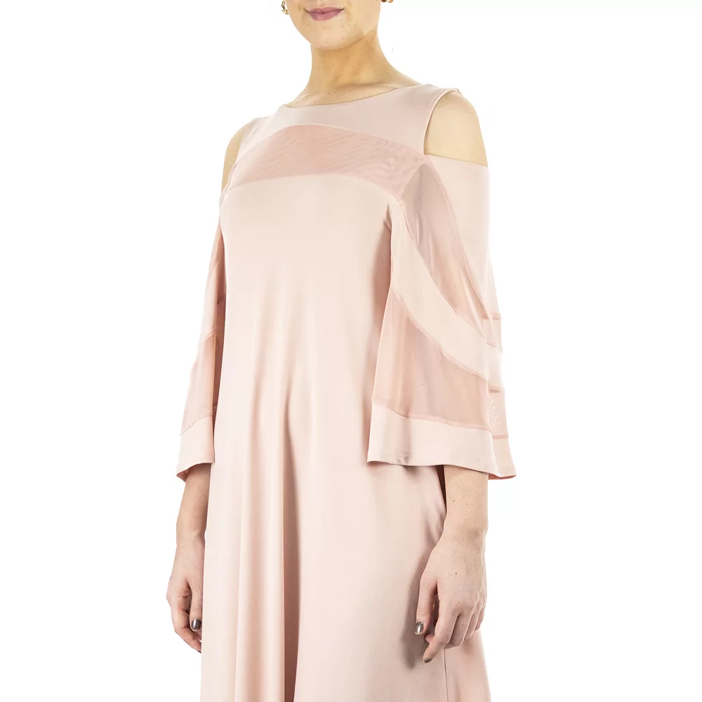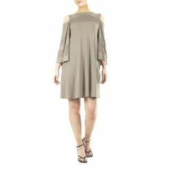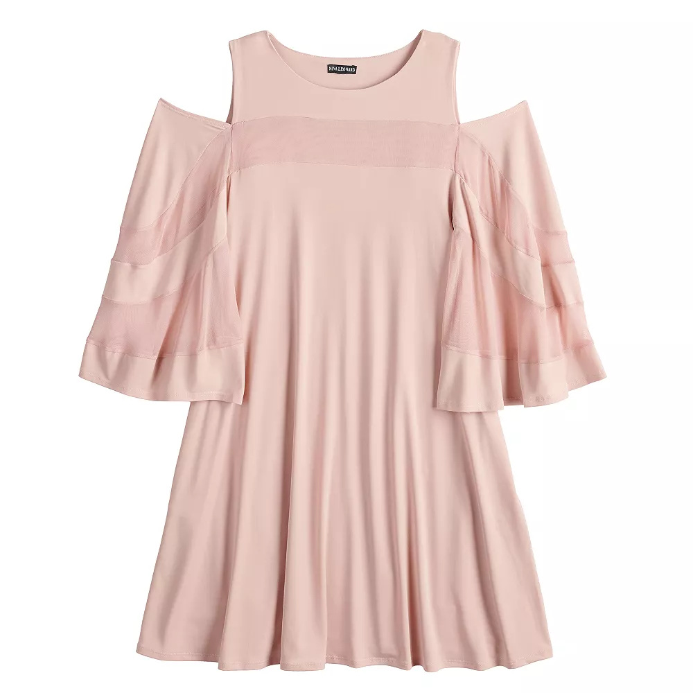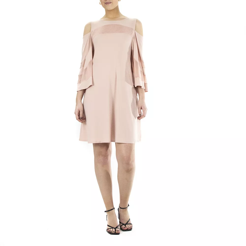 Dramatic bell sleeves and mesh panels add instant intrigue to this women’s Nina Leonard swing dress.