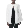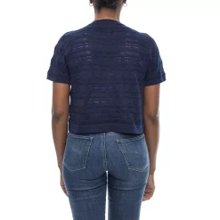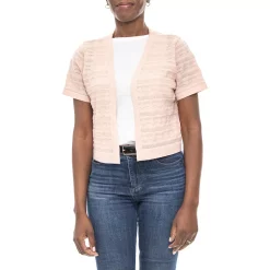 This women’s novelty-stitch bolero by Nina Leonard adds a stylish layer to any outfit.