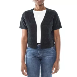 This women’s novelty-stitch bolero by Nina Leonard adds a stylish layer to any outfit.