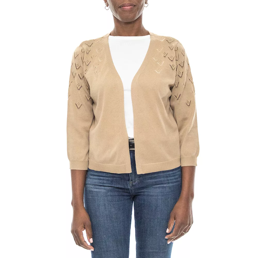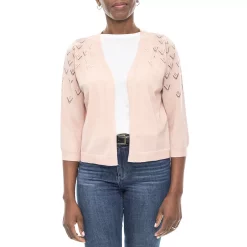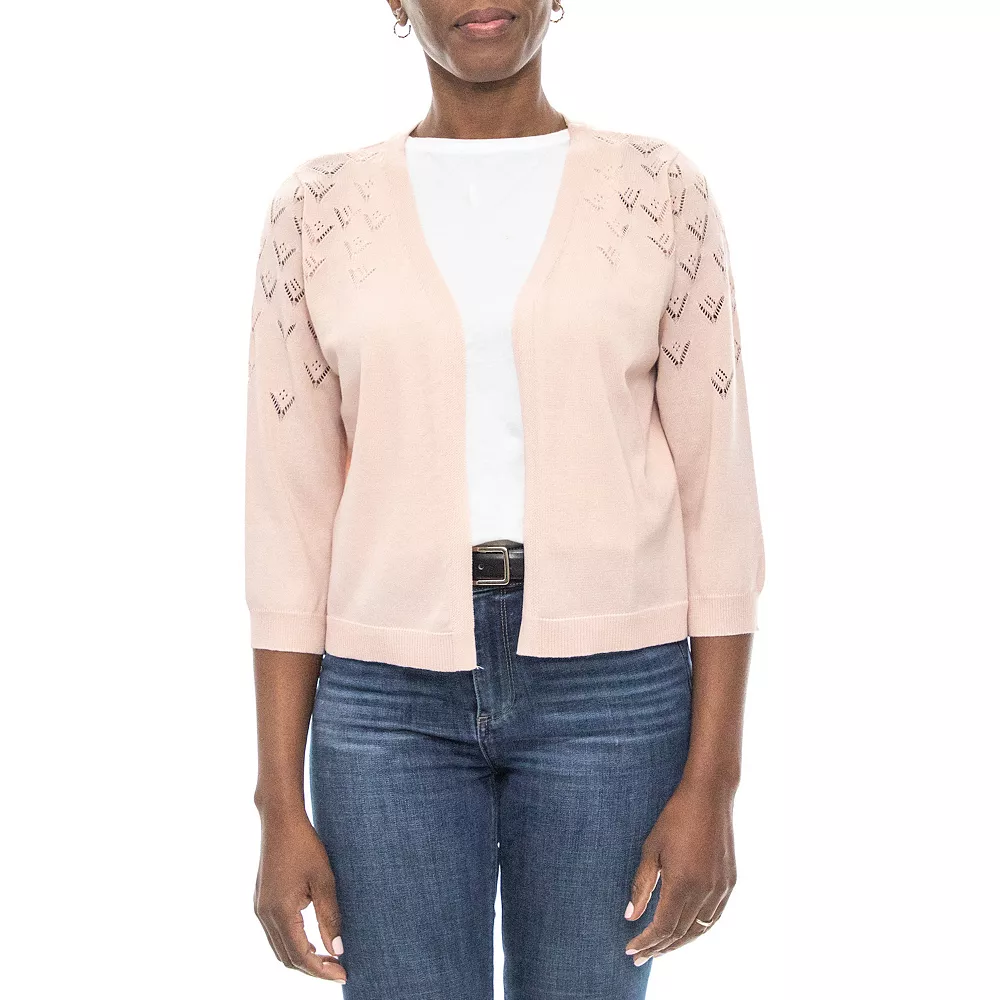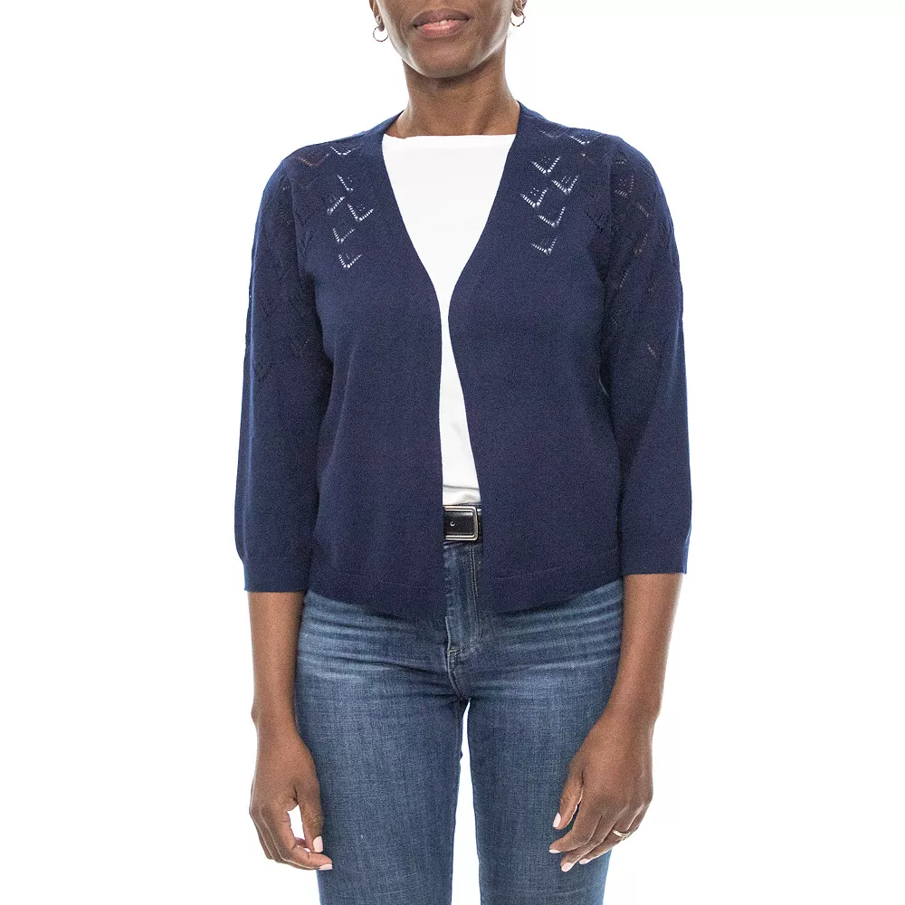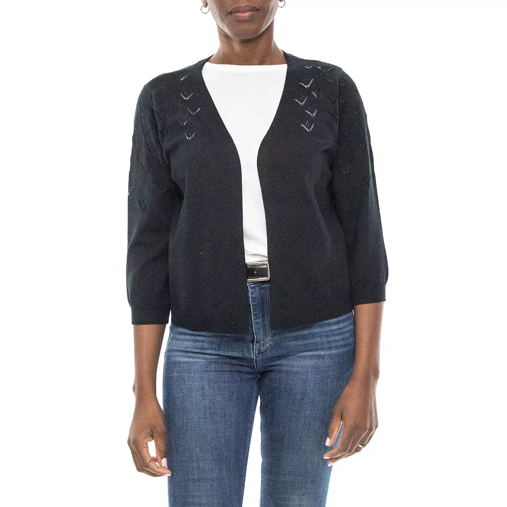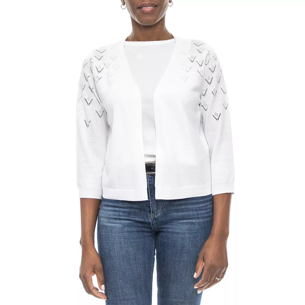This women’s pointelle bolero by Nina Leonard adds a stylish layer to any outfit.