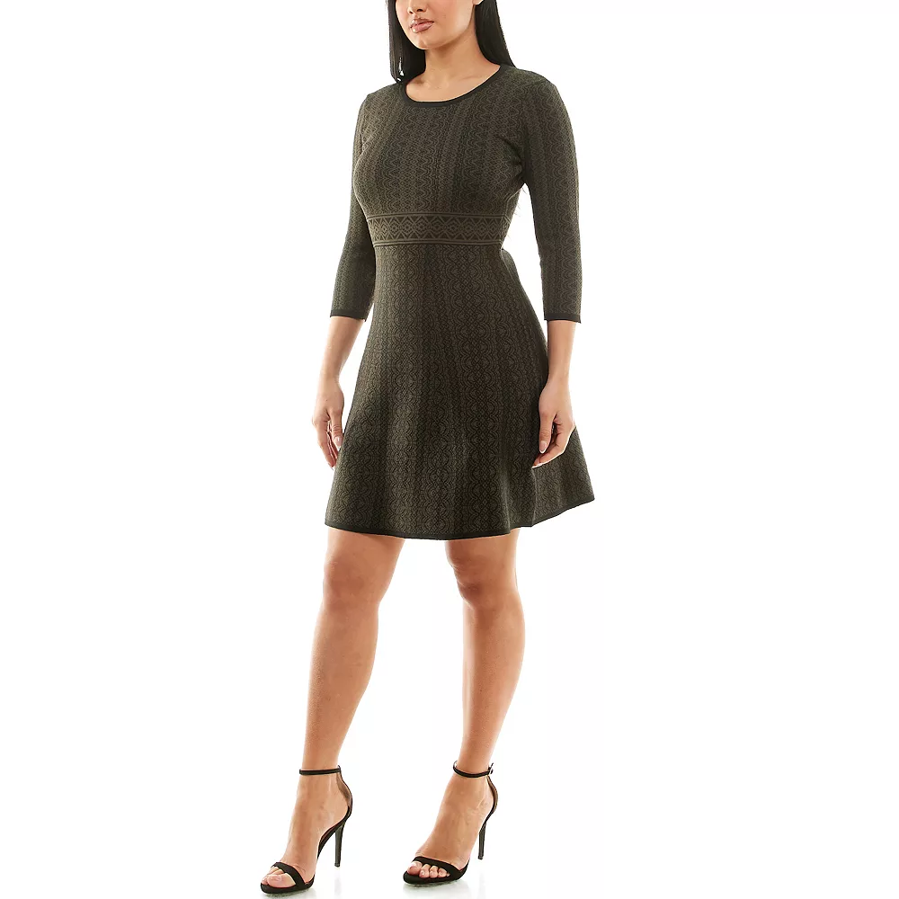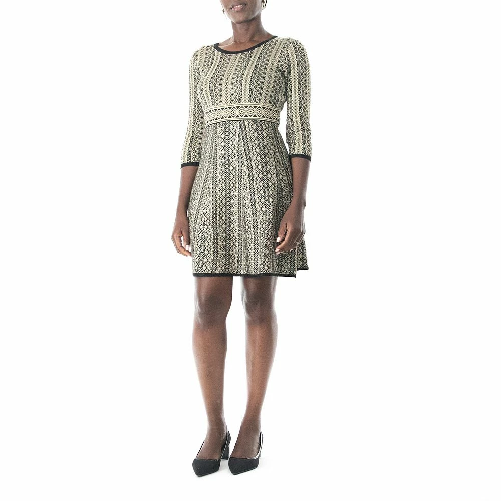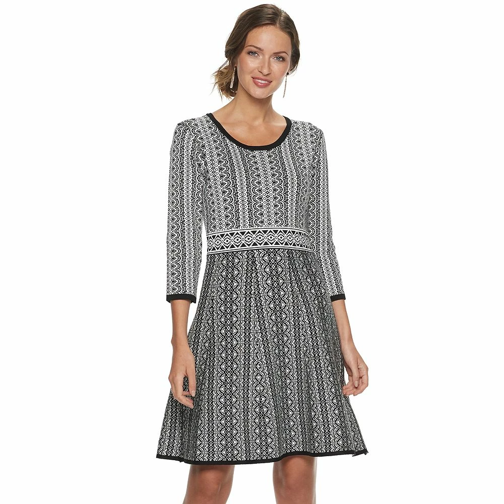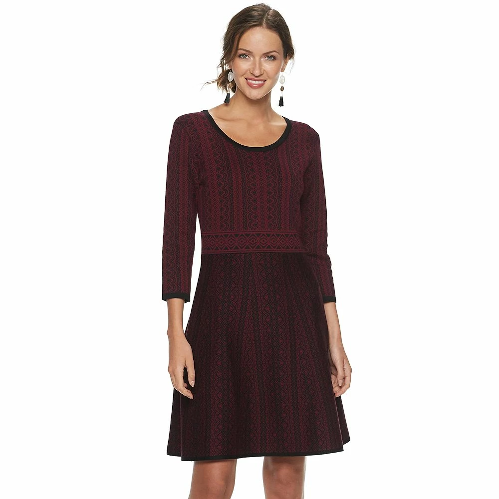 A charming print and a fit & flare cut makes this women’s Nina Leonard sweater dress a charming choice for colder months.