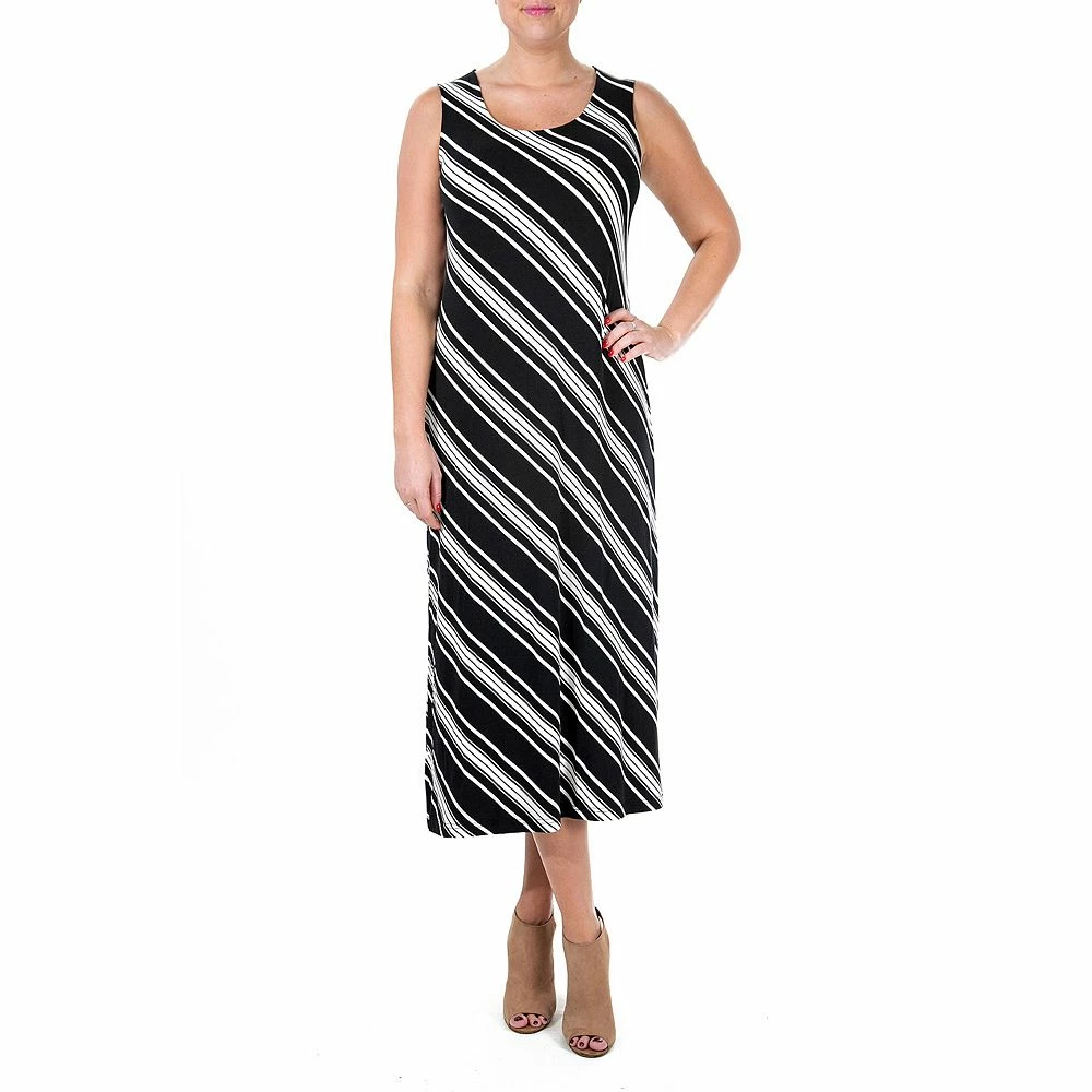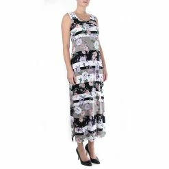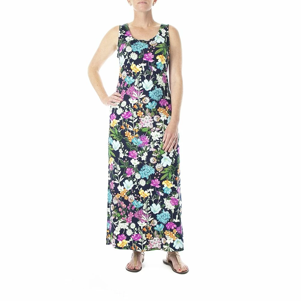 A classic print and long, maxi length make this women’s Nina Leonard dress a wardrobe staple.