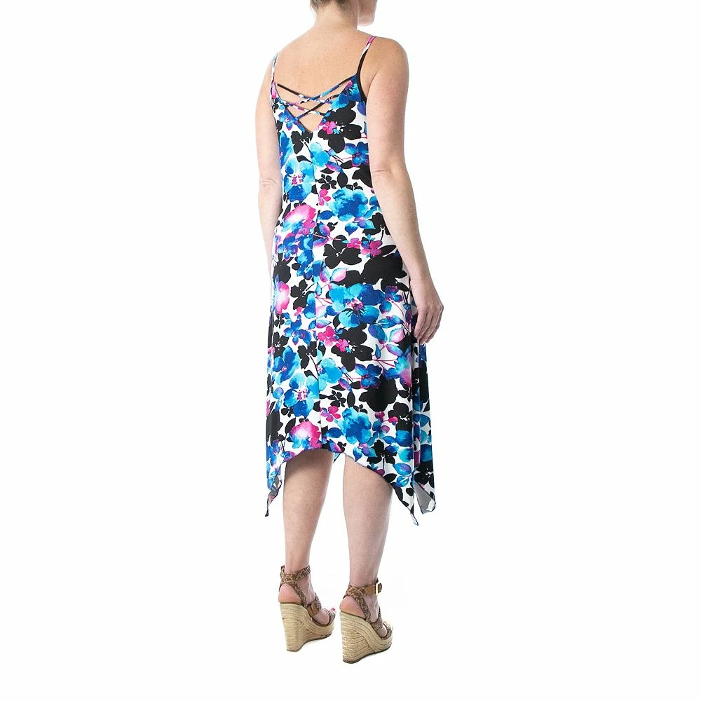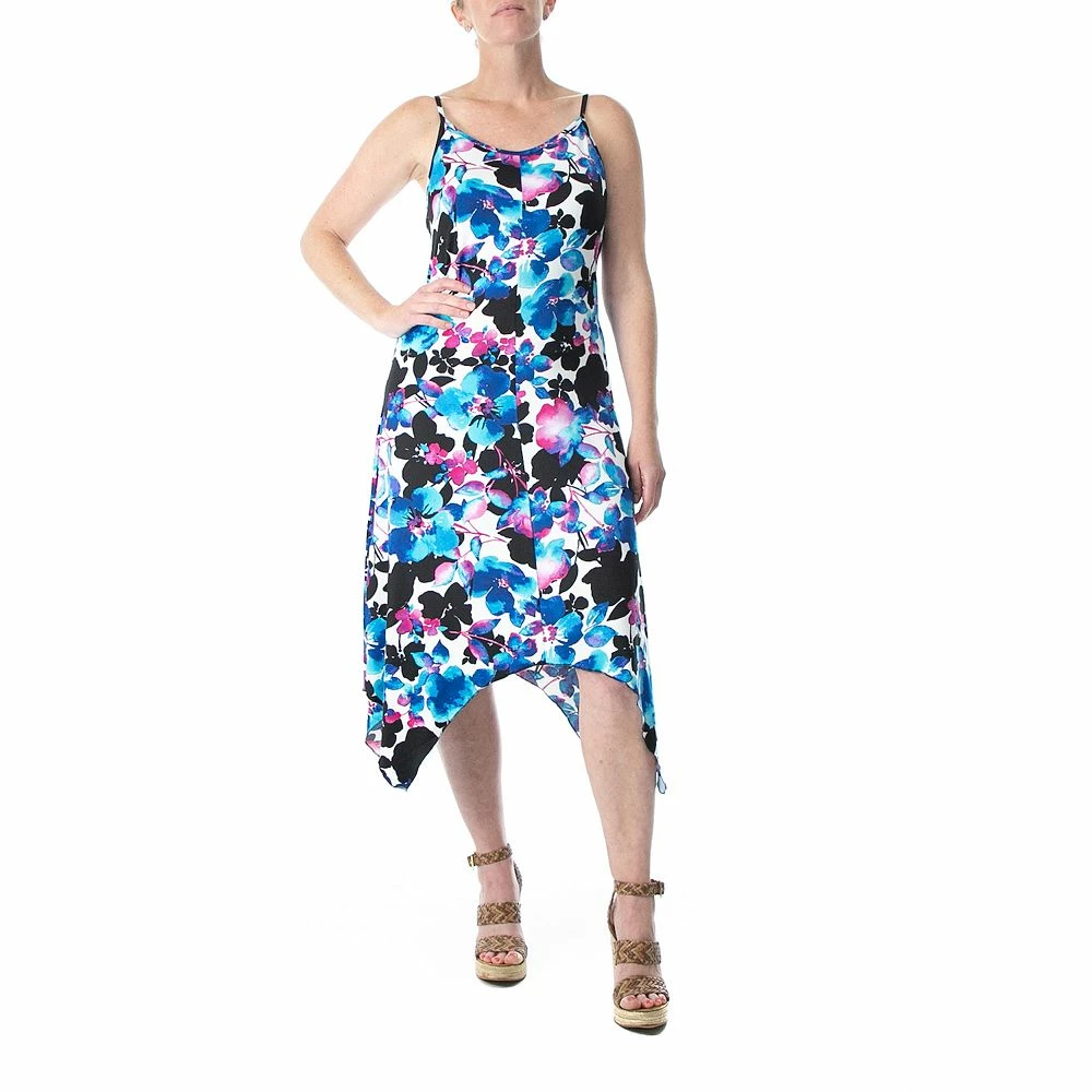 A shark-bite hem and a charming print give this women’s Nina Leonard slip dress a lovely look.