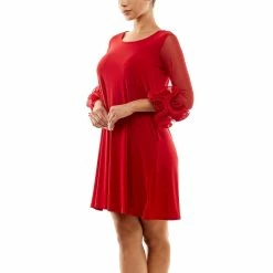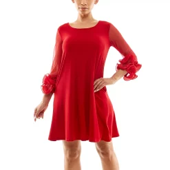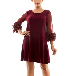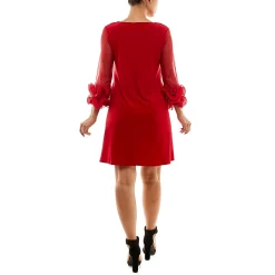 The sheer, ruffle sleeves and sleek design make this women’s Nina Leonard dress perfect for any special occasion.