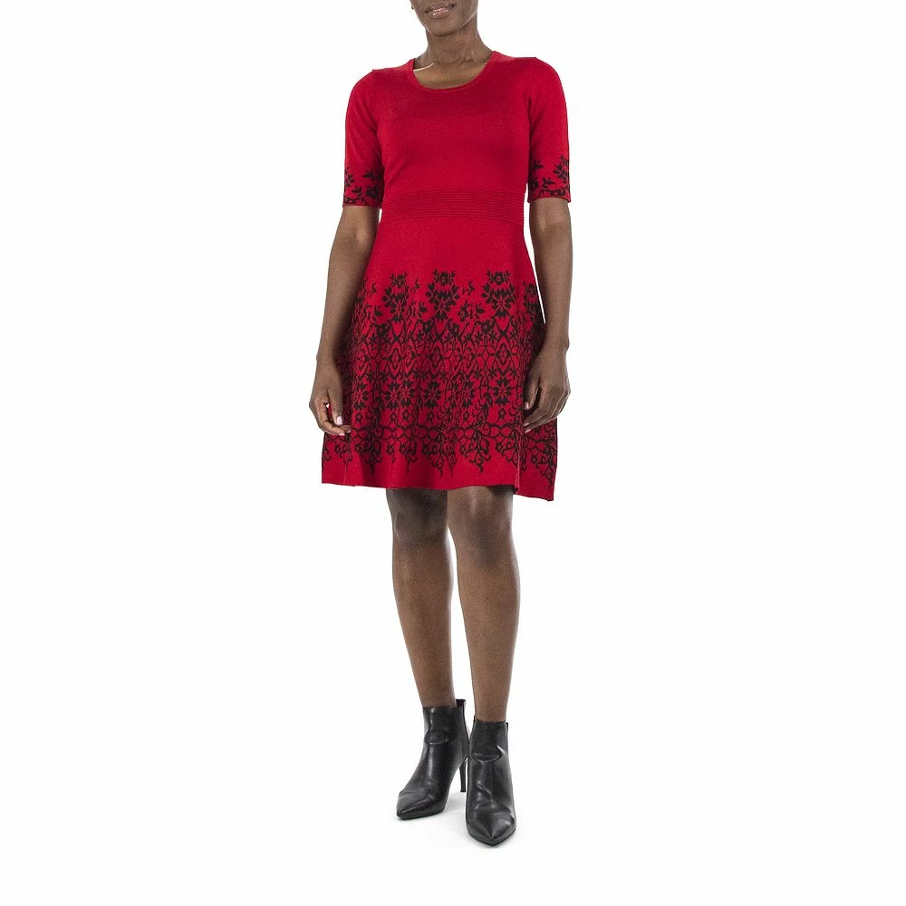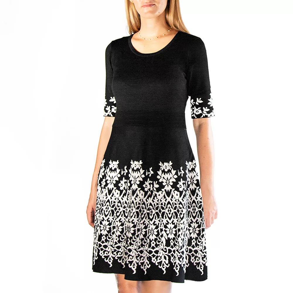 You’ll look stylish in this women’s Nina Leonard fit & flair sweater dress.