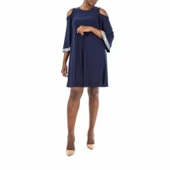 You’ll love the sequin trim and cold-shoulder detail of this women’s Nina Leonard dress. Plus, it has pockets!
