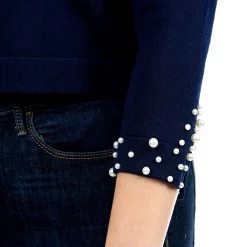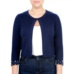 Finish off any outfit wearing this women’s Nina Leonard bolero, featuring simulated pearl trim.