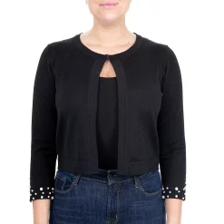 Finish off any outfit wearing this women’s Nina Leonard bolero, featuring simulated pearl trim.