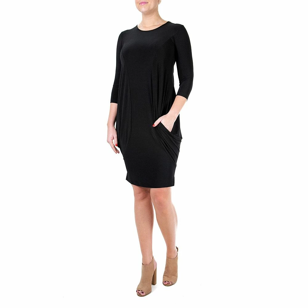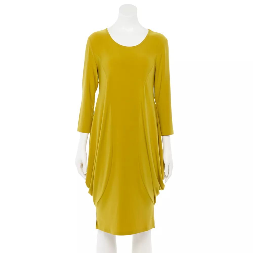 A draped design can be worn as a dress or a tunic, making this women’s Nina Leonard dress a versatile favorite.