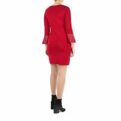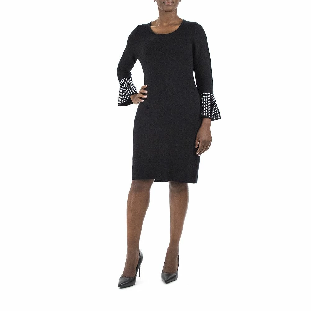Add an edgy touch to your special occasion wardrobe with this women’s Nina Leonard sweater dress, featuring studded accents