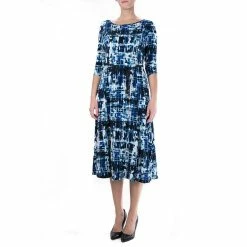 You’ll turn heads in this print women’s midi dress by Nina Leonard.