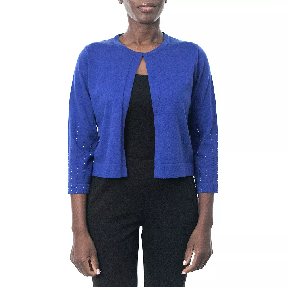 Beautiful style. This women’s bolero from Nina Leonard is the perfect layering piece.