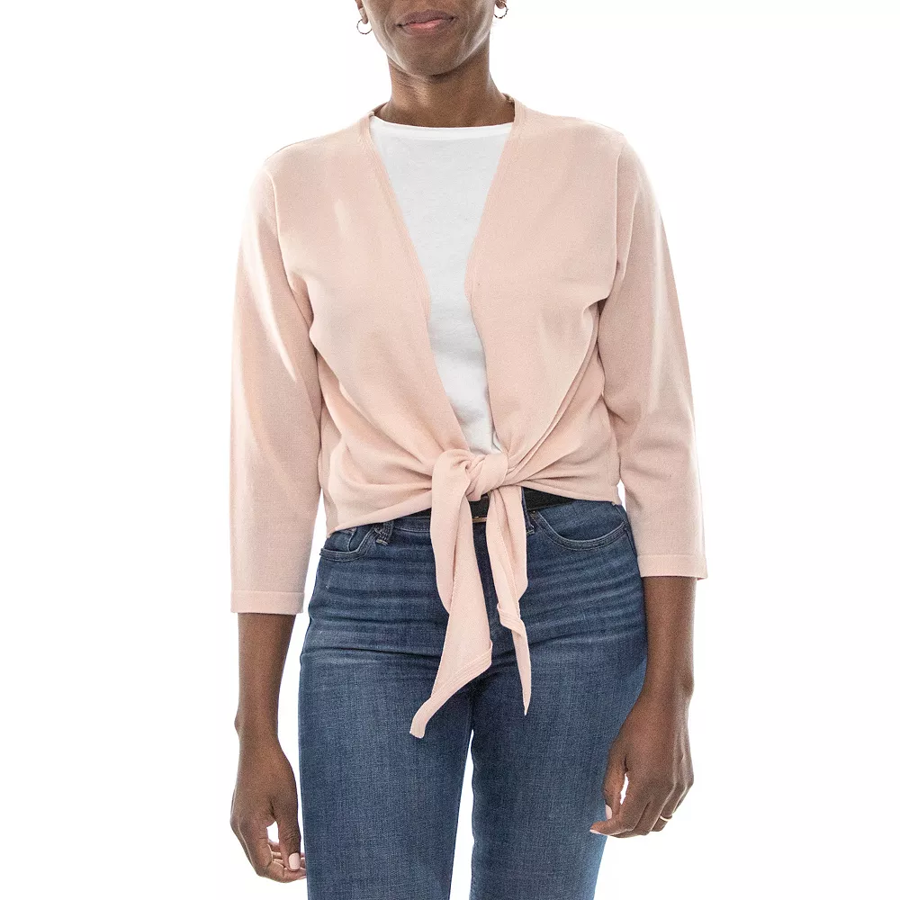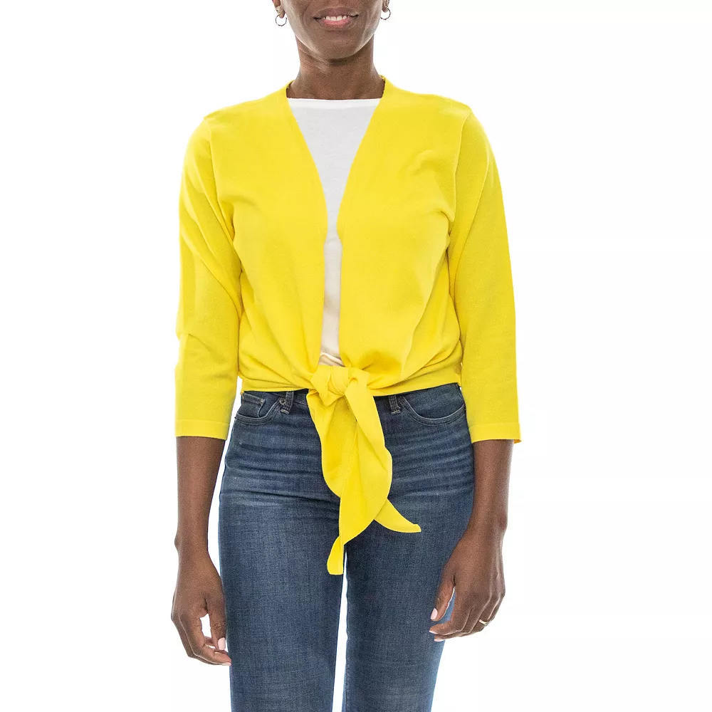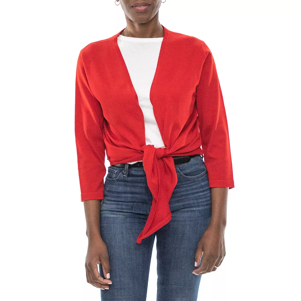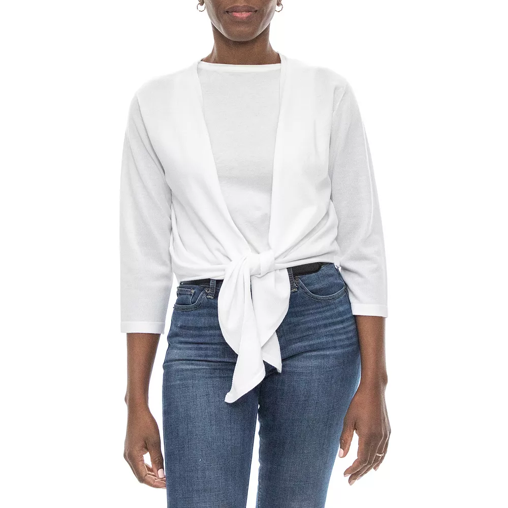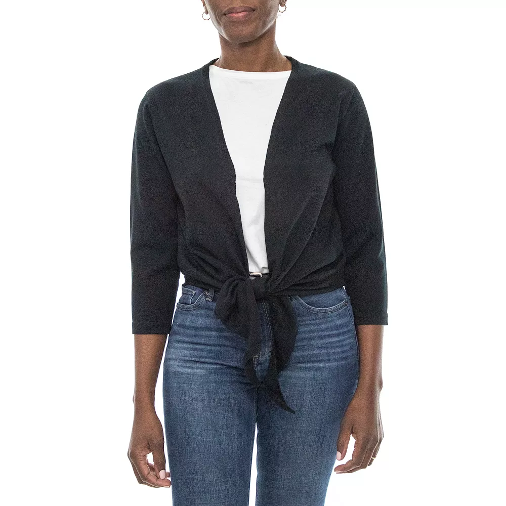 This women’s tie-front bolero jacket by Nina Leonard adds a stylish layer to any outfit.
