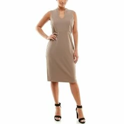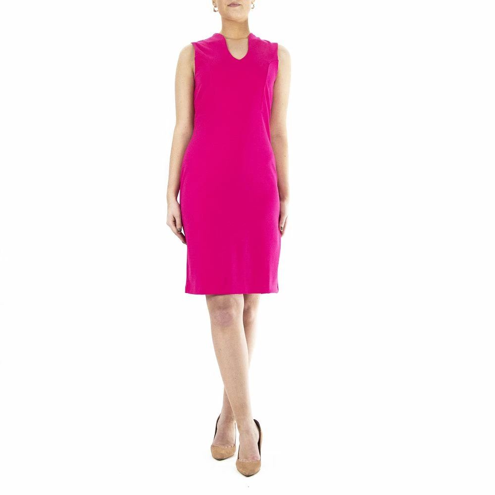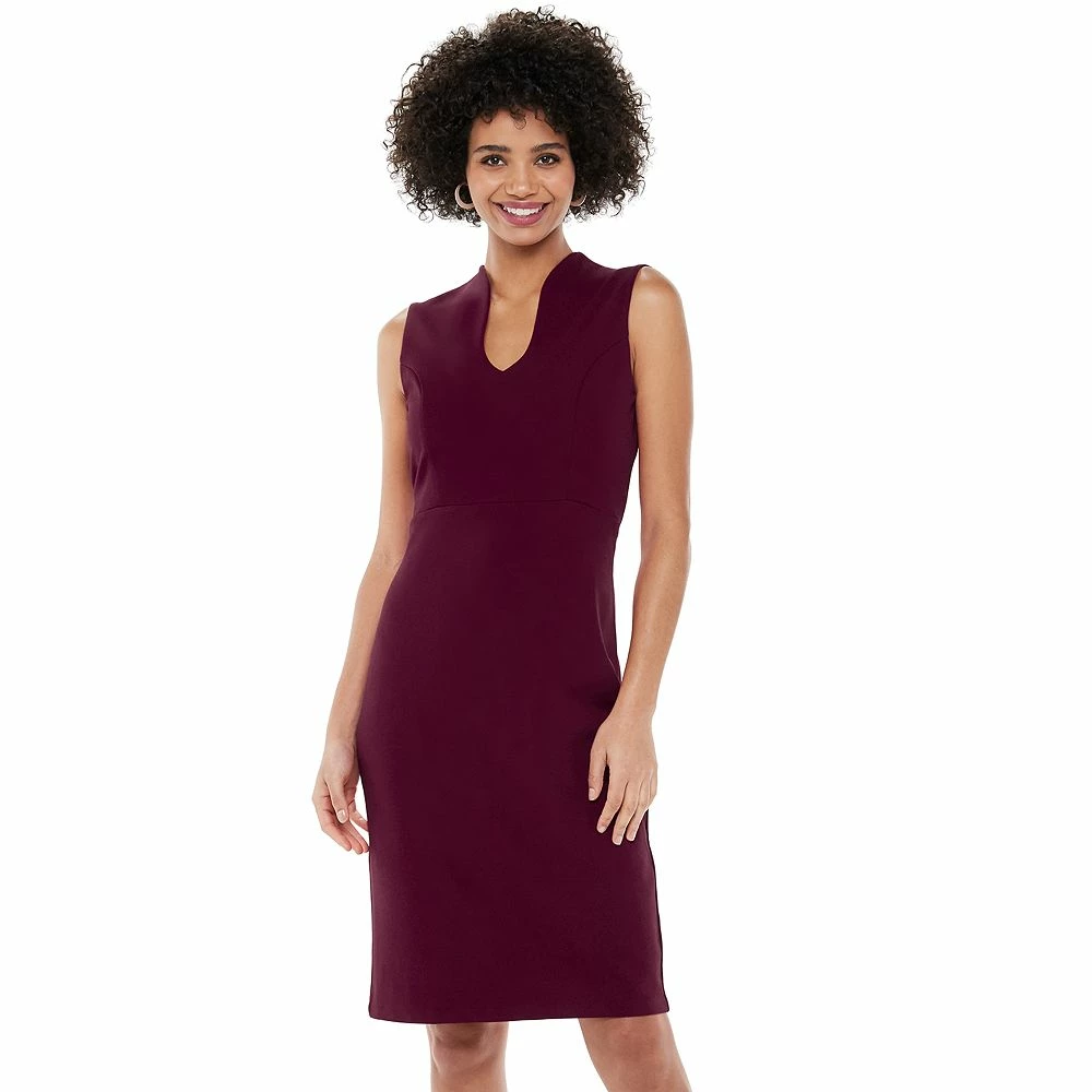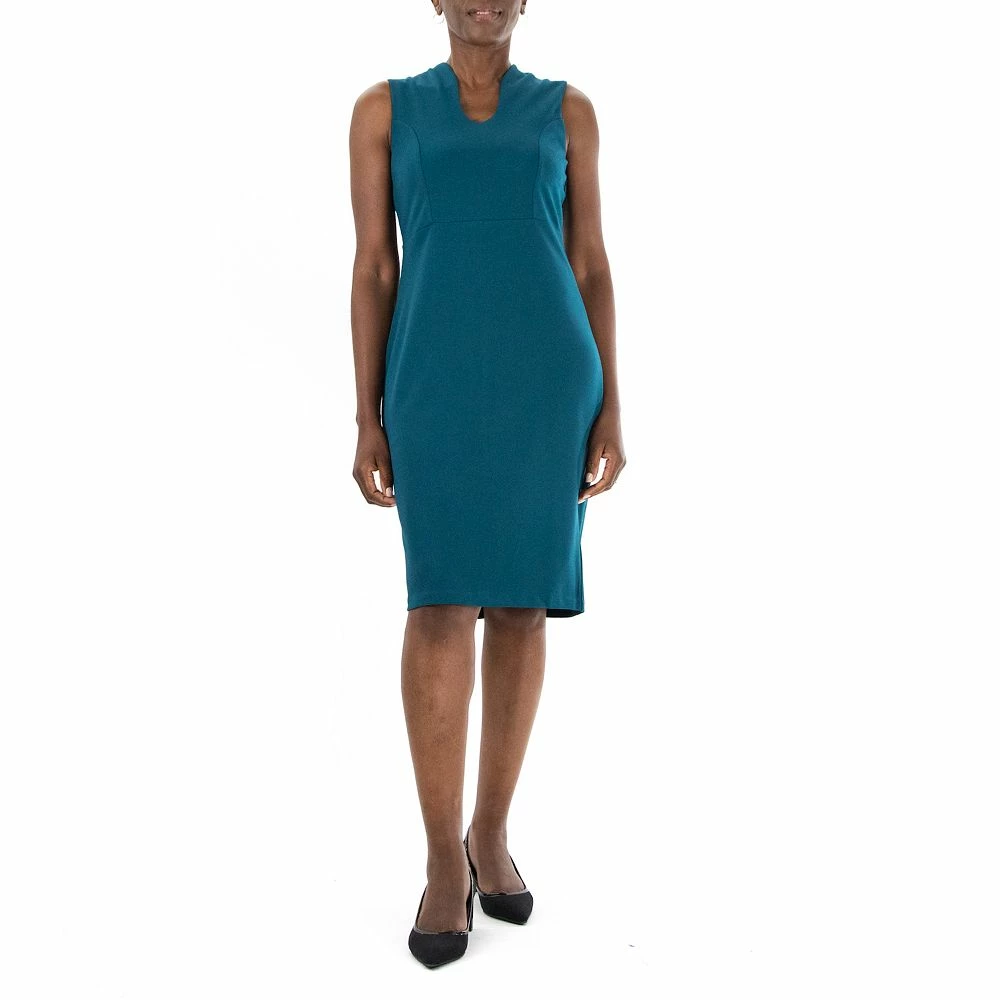 A unique u-neckline and a figure-flattering sheath cut make this women’s Nina Leonard dress a stylish staple.